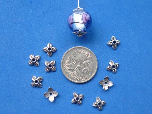 Silver 8mm leafcaps, shown on a 12mm bead